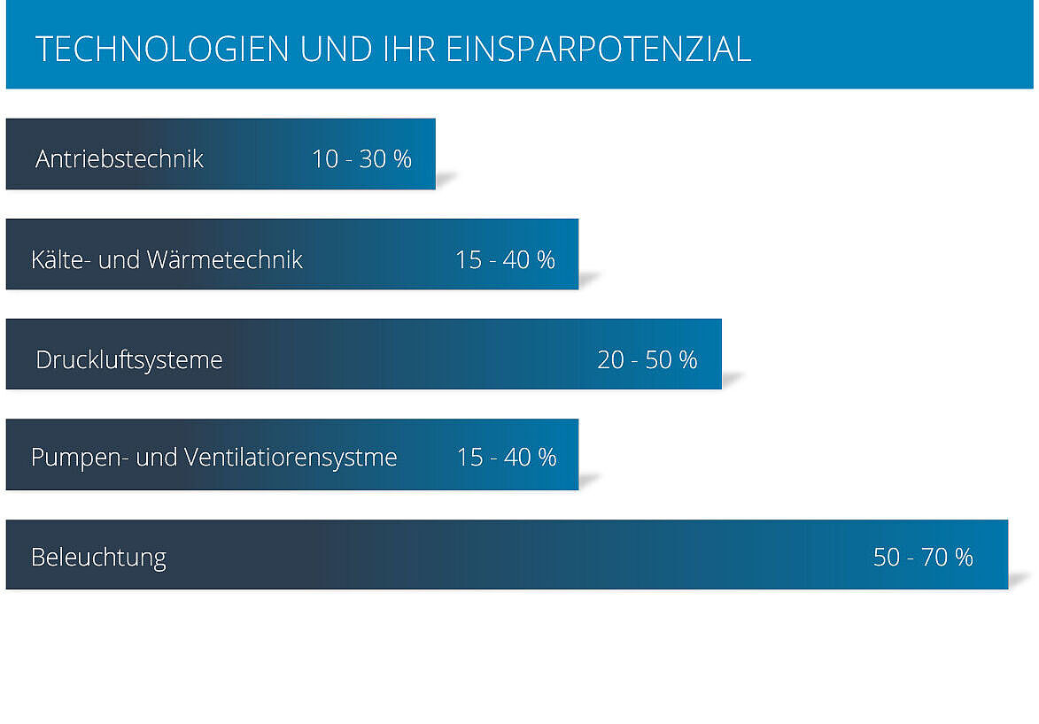 Optimierungspotenzial: Einsatz von hocheffizienten Motoren, drehzahlgeregelter Antriebssysteme und intelligenter Steuerungen