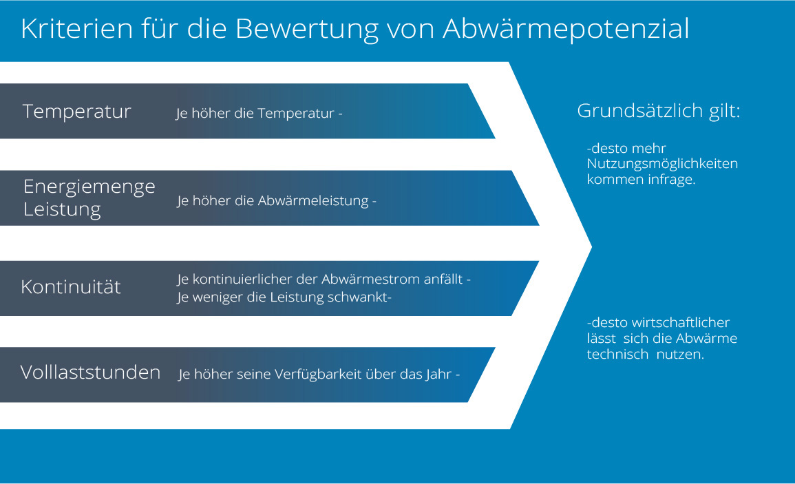 Hochtemperatur-Abwärme kann zudem in einer Kaskadennutzung mehrfach verwertet werden, indem sie auf verschiedenen Temperaturniveaus schrittweise genutzt wird – beispielsweise zunächst zur Stromproduktion, anschließend zur Prozesswärmeversorgung und zuletzt zur Raumheizung.